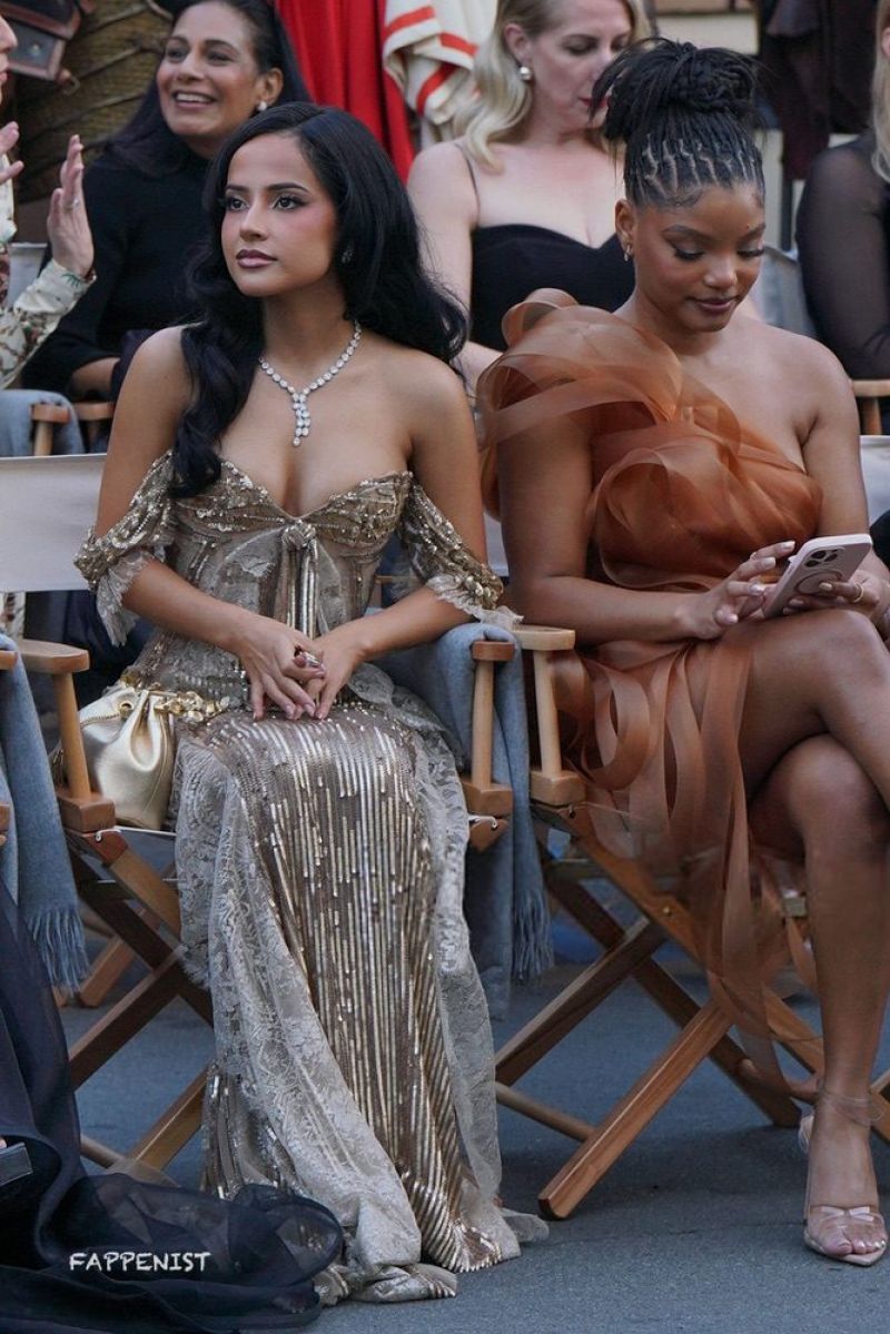 Becky G braless boobs showing nice cleavage with her big tits in a sexy sequin dress photographed at 2025 Vogue World.