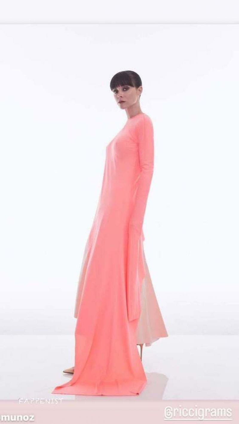 Christina Ricci braless boobs in a sexy pink dress showing off her tits with her nipples pokies visible posing for a new photoshoot.